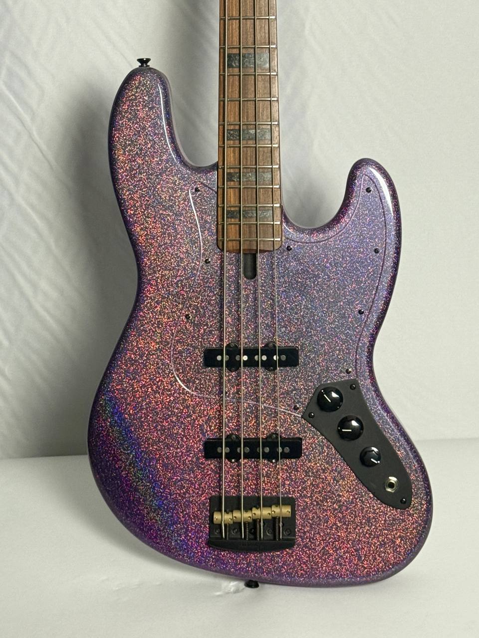 Specs: • Body: Alder • Finish: Purple Sparkle (Glitter) • Neck: Maple • Fingerboard: Pau Ferro • Bridge: AllBridge • Pickups: Lindy Fralin •