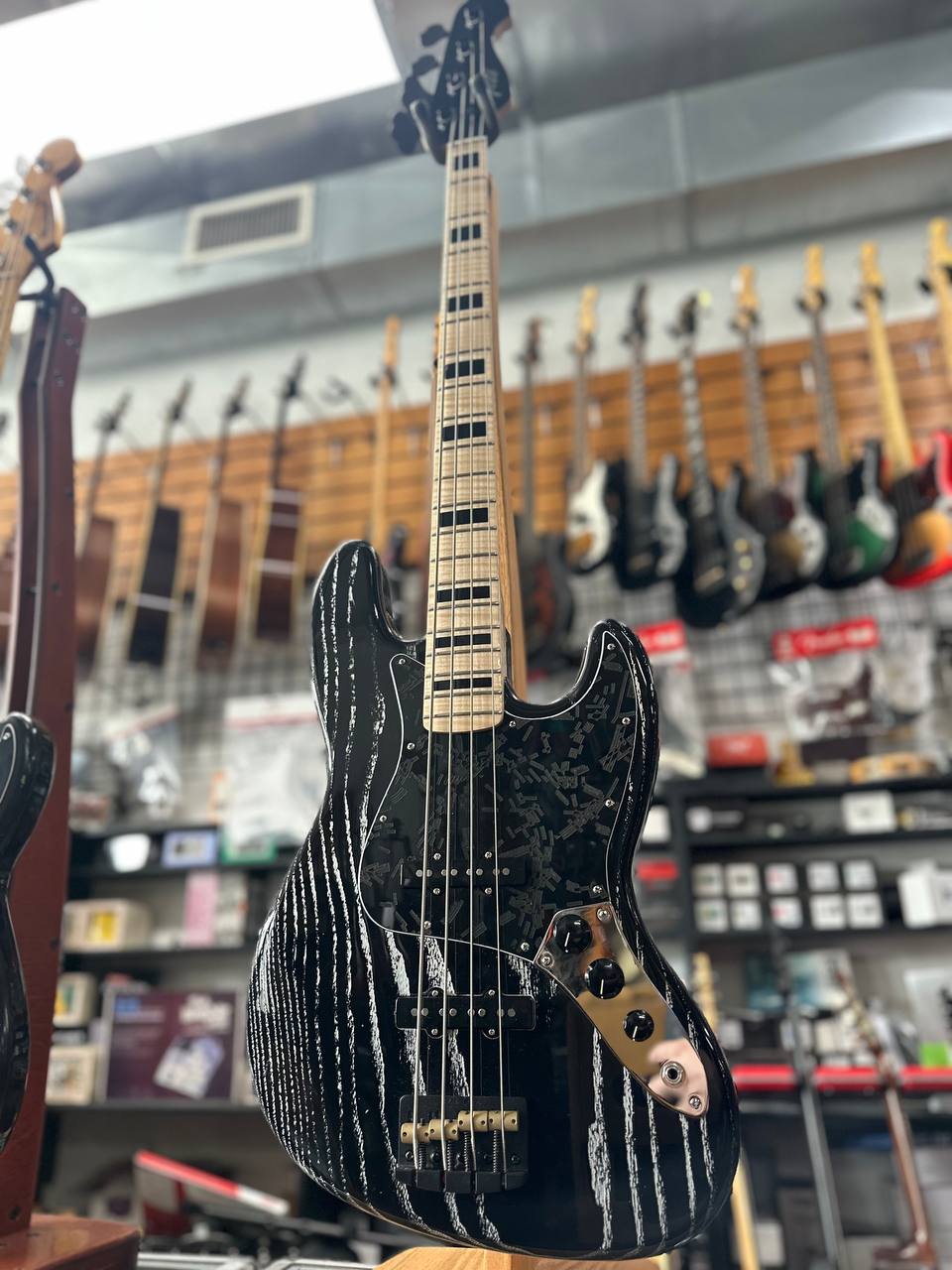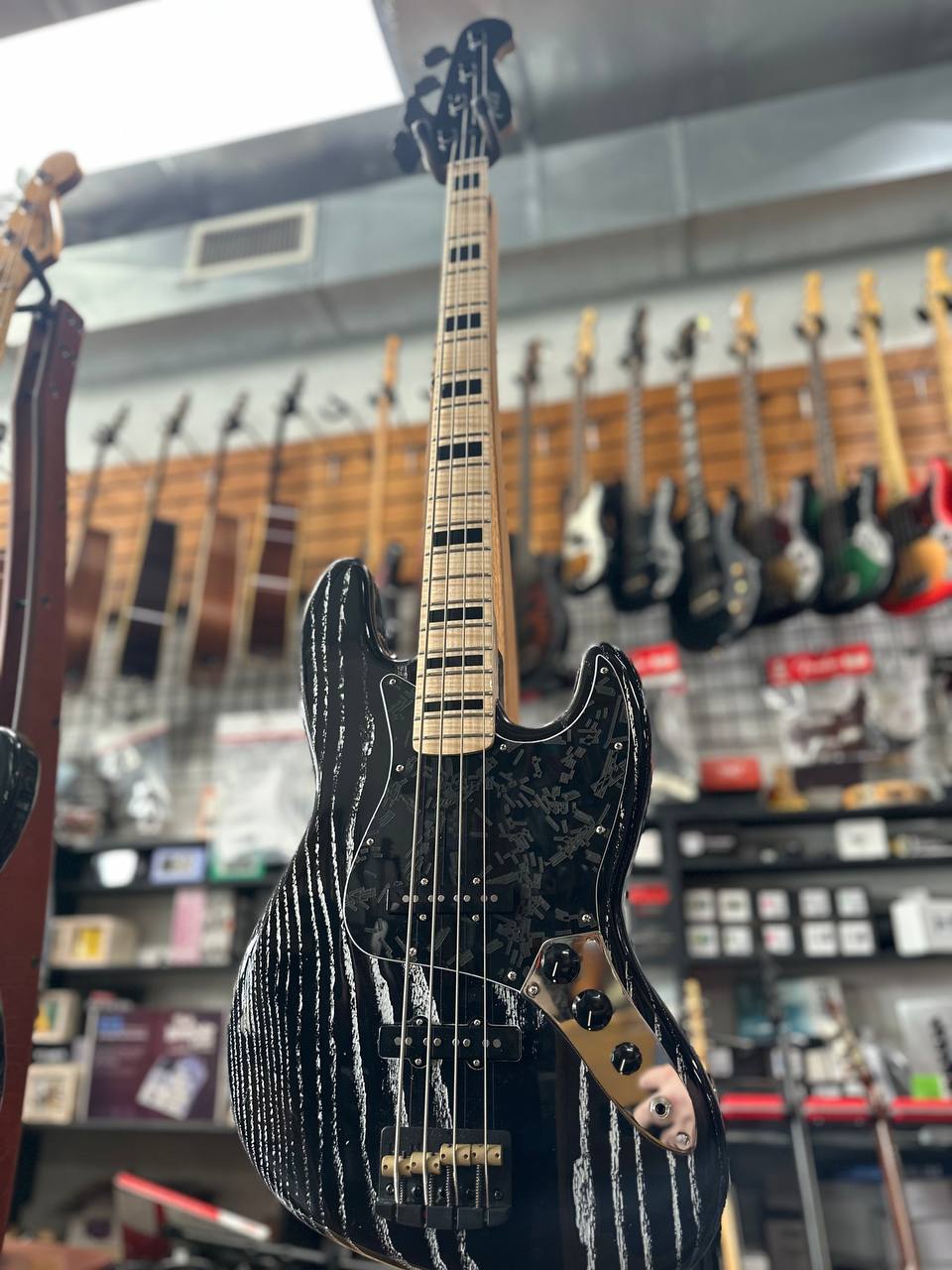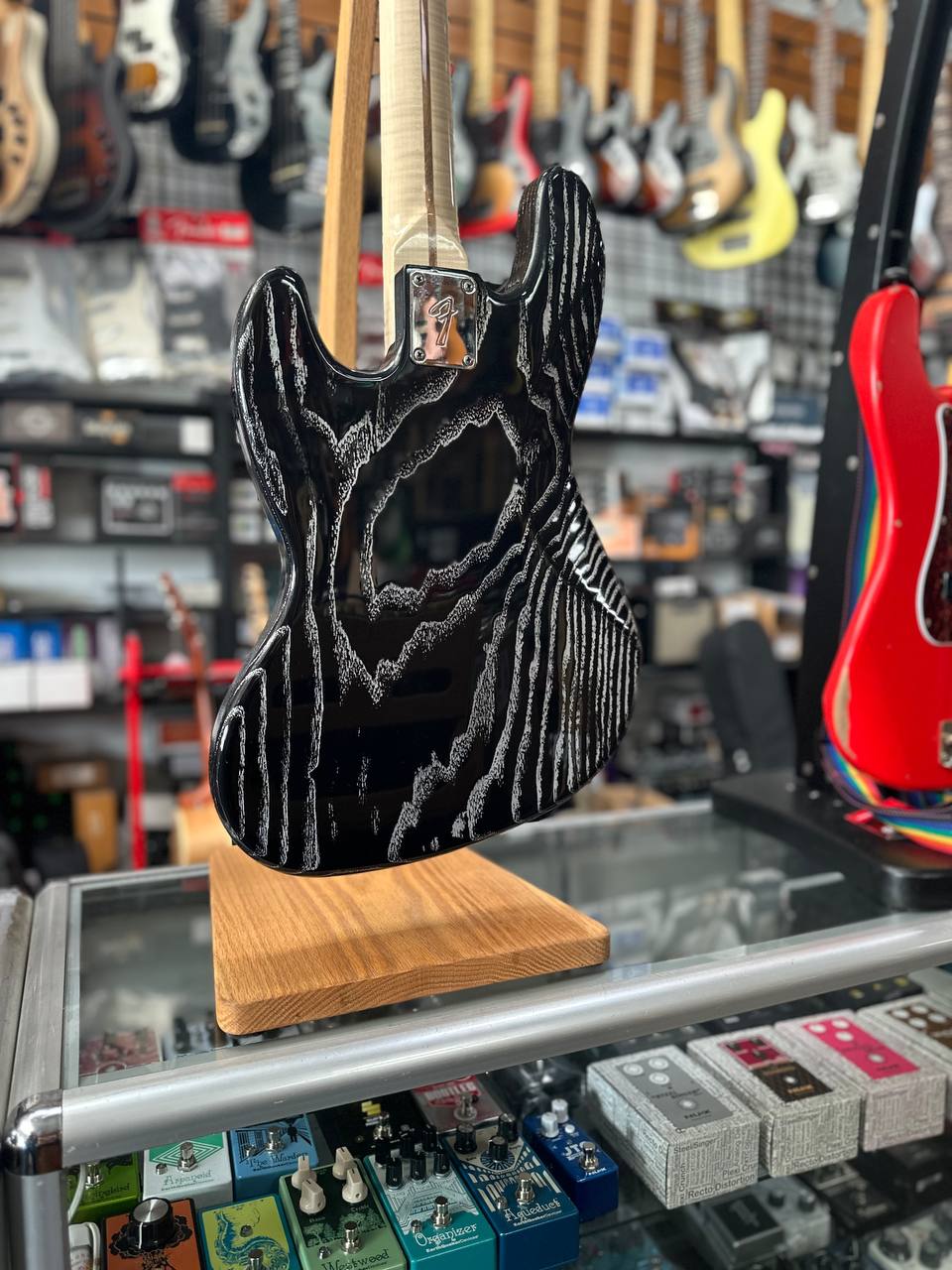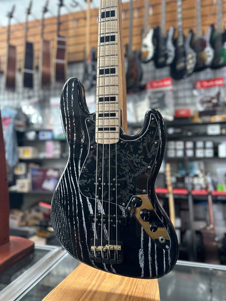 Body: One piece ash in an open grain black wasteland finish